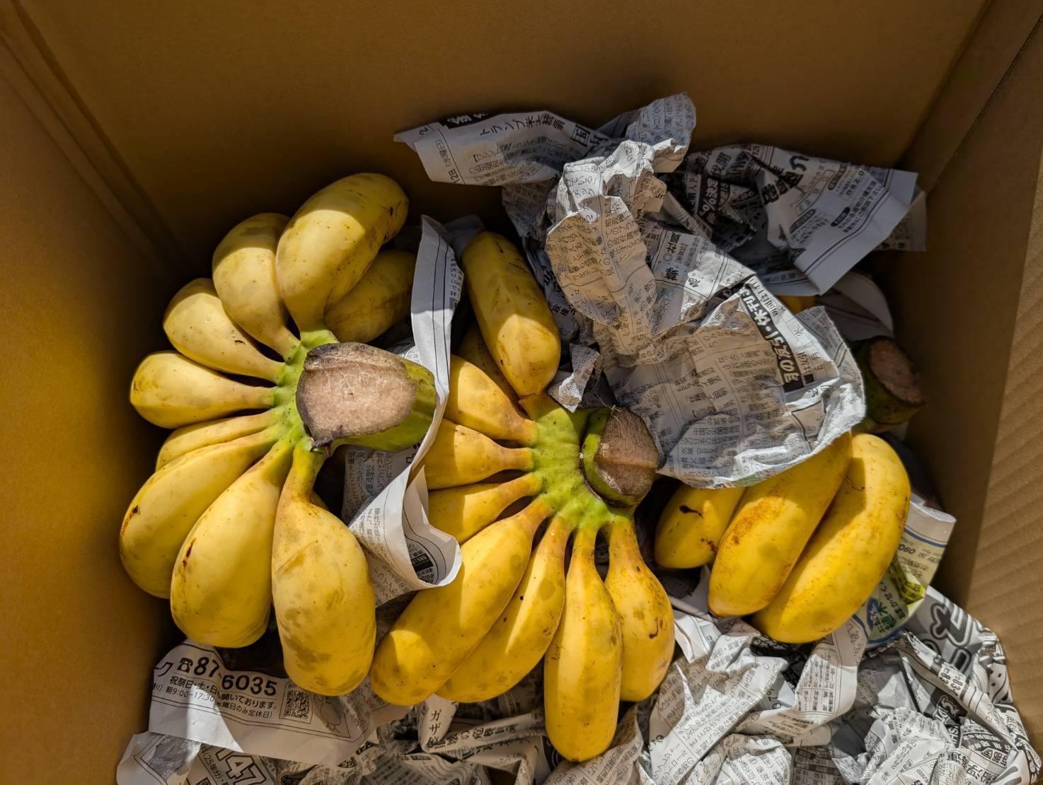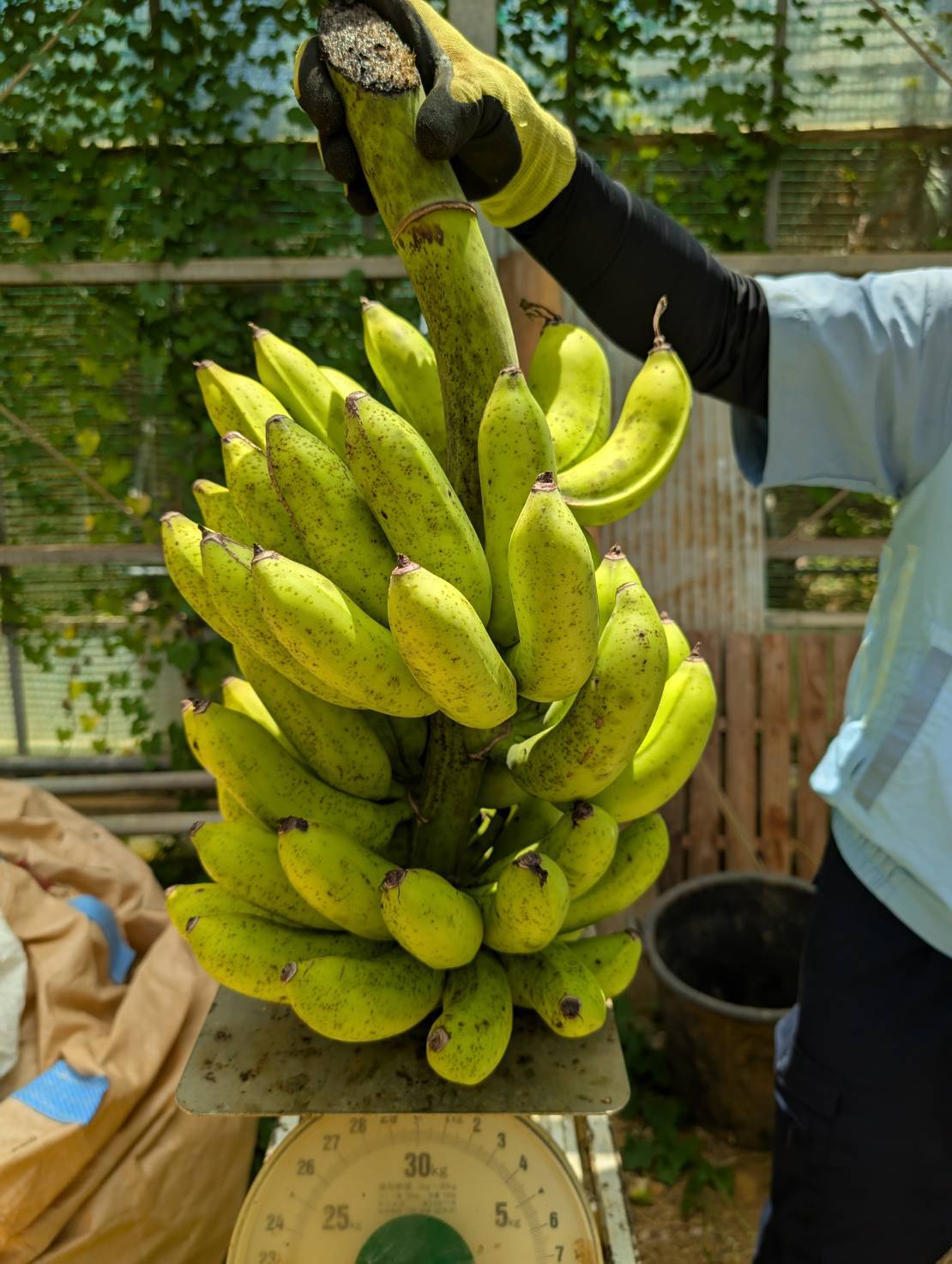 市場の流通量1%未満、希少性の高い島バナナ。市場に出回る品種、キャベンディッシュ、グロスミシェル種とは異なる小笠原諸島から伝わった在来種です。栽培がとても難しく、台風や病気のリスクが高く市場では、出回らない希少性の高い最高級フルーツです。